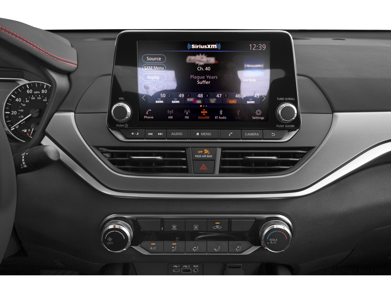 - Radio: AM/FM Audio System -inc: RDS, MP3 and aux-in, 6 speakers, NissanConnect 8" color display w/multi-touch control, Bluetooth® hands-free phone system, streaming audio via Bluetooth®, hands-free text messaging assistant, 2 front illuminated USB ports (1 type-A and 1 type-C) for compatible devices, Apple CarPlay, Android Auto, SiriusXM Radio, Siri Eyes Free, Google Assistant voice recognition and 2 rear illuminated USB ports (1 type-A and 1 type-C)