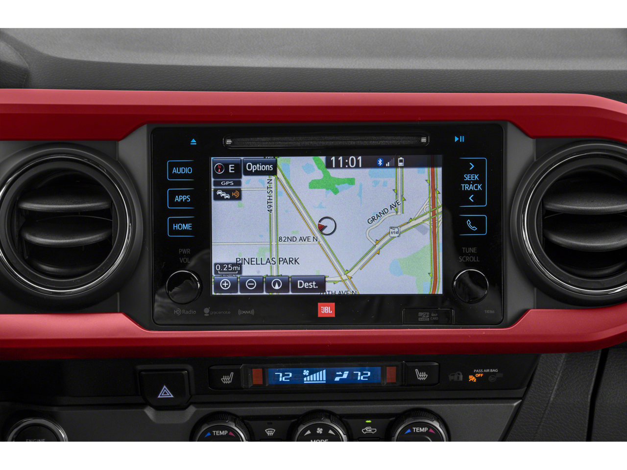 - Radio: Entune Premium w/AM/FM/CD/Nav/App Suite -inc: 6 speakers, 7" high-resolution touch-screen display w/split screen, auxiliary port, USB media port, Siri eyes free, advanced voice recognition, Bluetooth hands-free phone capability, phone book access and music streaming, cache radio, HD Radio, HD predictive traffic and doppler weather overlay and SiriusXM satellite radio w/complimentary SiriusXM All Access 90-day trial subscription included