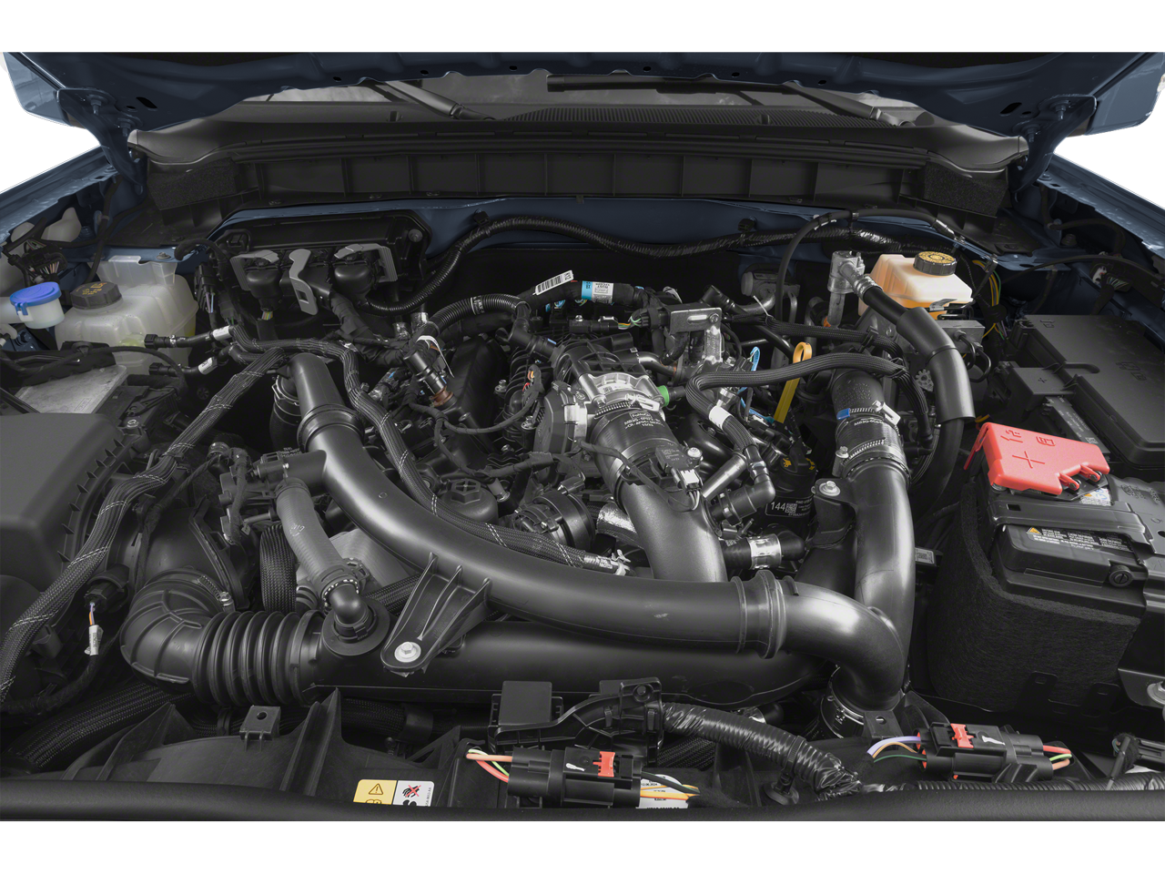 Equipment Group 314A High/lux Package: 18" Bright Machined Aluminum Wheels; 3.73 Axle Ratio; 2.3L EcoBoost I-4 Engine; Evasive Steering Assist; Heated Steering Wheel; 5. 920 lbs GVWR; Adaptive Cruise Control; Additional Sound Deadening; Information on Demand Panel; Wireless Charging Pad; B&O Sound System by Bang and Olufsen; Front Parking Sensors; 10-Speed Automatic Transmission; 360-Degree Camera; P255/70R18 A/T Tires; Universal Garage Door Opener; Heated Leather-Trimmed/vinyl Bucket Seats; Sideview Mirrors. Ford Performance Heavy-Duty Modular Front Bumper. Trailer Tow Package. Tailgate Table. Auxiliary Switches. Race Red. **Equipment listed is based on original vehicle build and subject to change. Please confirm the accuracy of the included equipment by calling the dealer prior to purchase.**