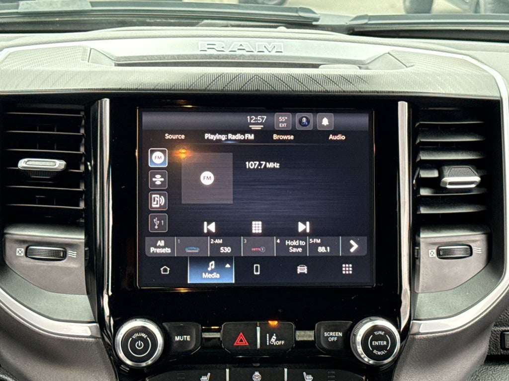This Ram 1500 has a clean CARFAX vehicle history report. Protect it from unwanted accidents with a cutting edge backup camera system. Bluetooth® technology is built into this 2025 Ram 1500 , keeping your hands on the steering wheel and your focus on the road. Keep your hands warm all winter with a heated steering wheel in this Ram 1500 . This vehicle has auto-adjust speed for safe following. An off-road package is equipped on the vehicle. The state of the art park assist system will guide you easily into any spot. This vehicle is a certified CARFAX 1-owner. Apple CarPlay: Seamless smartphone integration for this 1/2 ton pickup - stay connected and entertained on the go! This Ram 1500's Forward Collision Warning system alerts the driver to potential front-end collisions, enhancing safety. This vehicle offers Android Auto for seamless smartphone integration. The vehicle's Lane Departure Warning keeps you safe by alerting you when you drift from your lane.